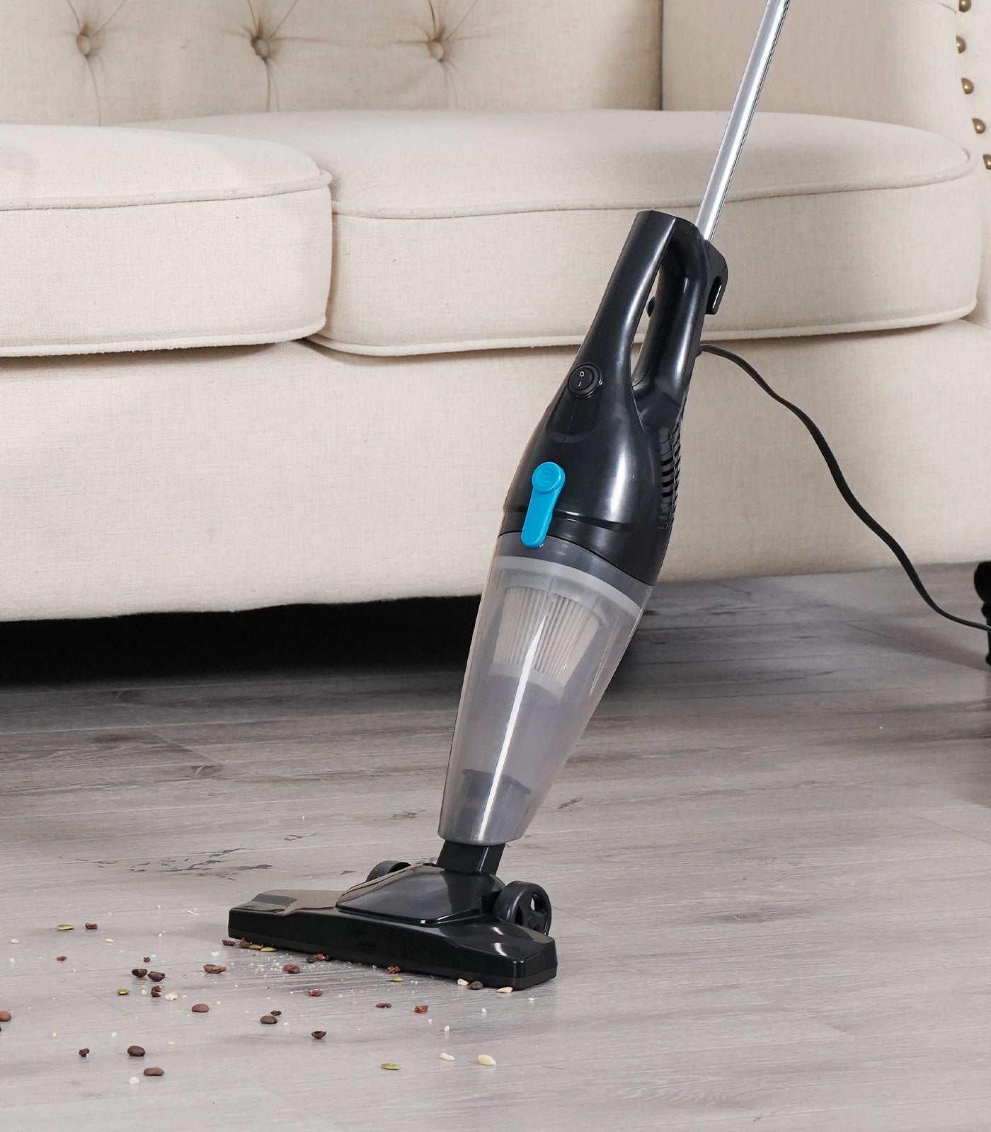 This Stick Vacuum Cleaner adapted ergonomic design and low center of gravity design, it can stand up alone anywhere without leaning on the wall. Whenever you need to pause the ongoing cleaning just leave it there and click to stand up by itself. 16.4 ft power cable can be wound to the back to save storage space.
